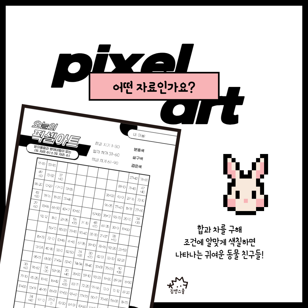 귀여운 동물 그림이 나오는 픽셀아트 활동지🐰