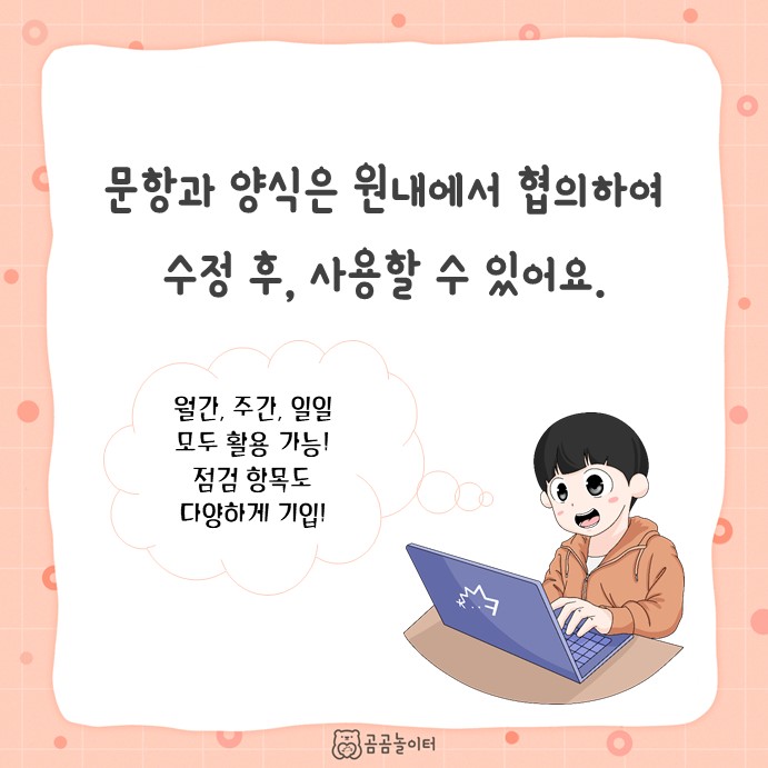 원 특성에 맞게 항목과 양식도 자유롭게 변경할 수 있어요❣