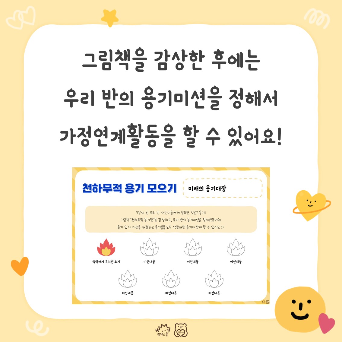그림책 감상 후 진행할 수 있는 가정연계활동까지 준비했어요😉