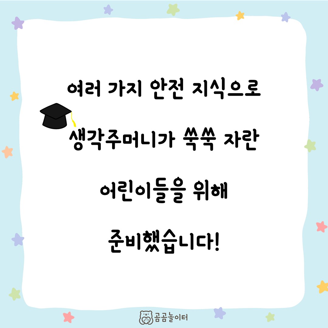 여러 가지 안전 지식으로 생각 주머니가 쑥쑥 자란 어린이들을 위해