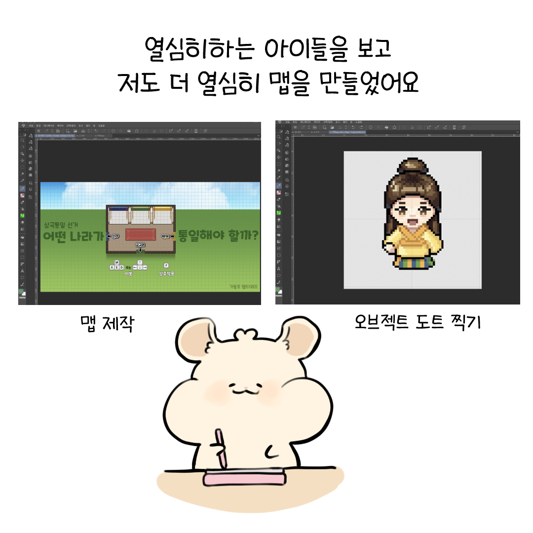 점심시간 삼국통일 전투도 하고, 매일 저녁 회의를 하며 열심히 메타버스 맵을 완성하고 있던 도중,