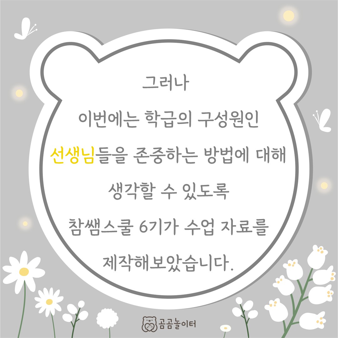 선생님과 학생 모두가 서로를 존중하고 배려하는 교실이 될 수 있기를