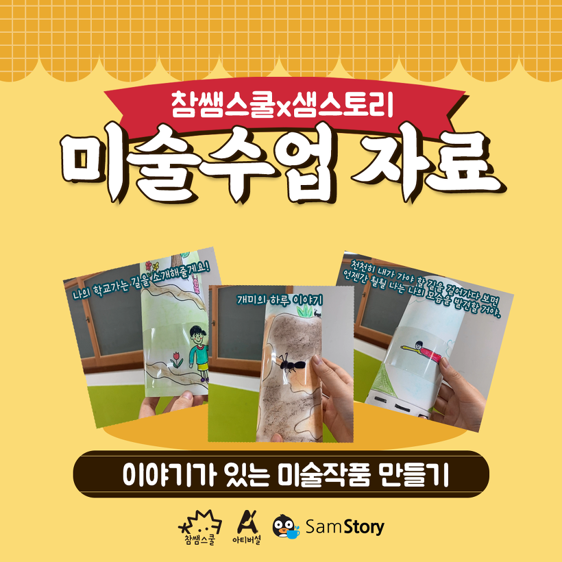 [샘스토리X참쌤스쿨X아티버셜] 🎨아티버셜과 함께 하는 미술 수업 자료🎨 OHP 필름과 배경지를 이용해 나만의 이야기를 작품으로 만들어 보아요!🖼 간단하면서도 의미 있는 미술 작품 만들기, 샘스토리X아티버셜과 함께 해요! 😍활동자료와 도안은 샘스토리에 있어요! 👉🏼https://bit.ly/362jDAY로 고고!