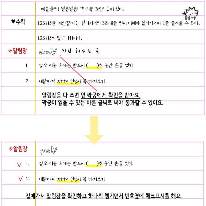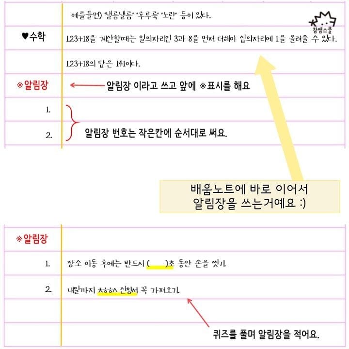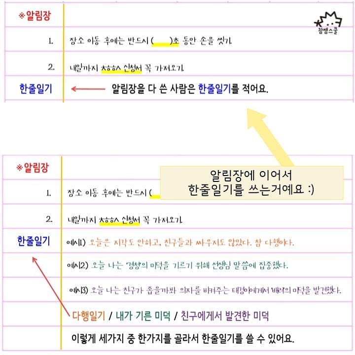 👉🏻알림장과 한권으로 합쳐서 더 효율적으로 사용하고 가정에서도 꺼내볼 수 있어요.
