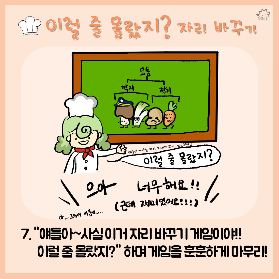 잘 만든 자리 하나 열 자리 부럽지 않다! 더 좋은 자리 바꾸기 아이디어가 있으신 선생님께서는 제보해주시면 카드뉴스로 제작해드립니다! 함께 나누어요🐶