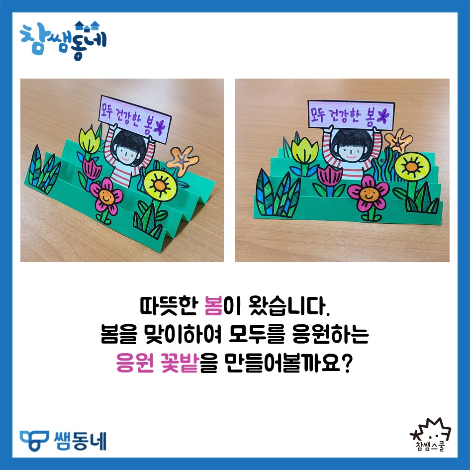 제목 옆 첨부파일을 확인하시면 다운로드 가능합니다! 댓글과 좋아요는 사랑입니다 봄이 찾아오고 있는 3월 따스한 봄을 맞이하여 친구들과 따뜻한 응원의 말을 나눠 보아요! 색종이 한 장과 도