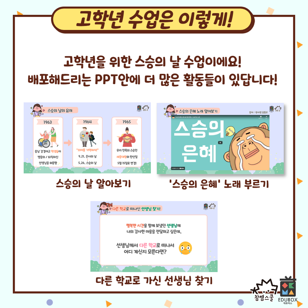 총 3탄(어린이날, 어버이날, 스승의날) 중 마지막, 스승의날 자료를 공개합니다!!