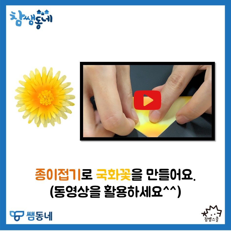 국화꽃을 접는 방법은 영상을 통해 확인할 수 있습니다:)