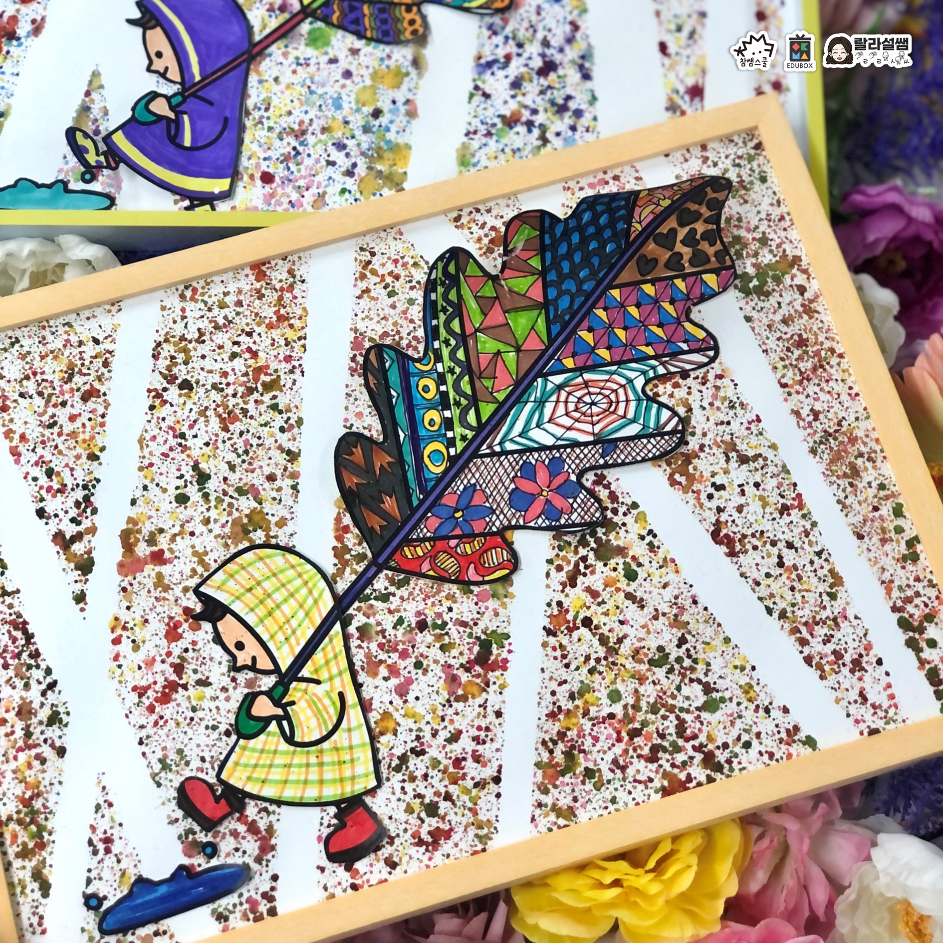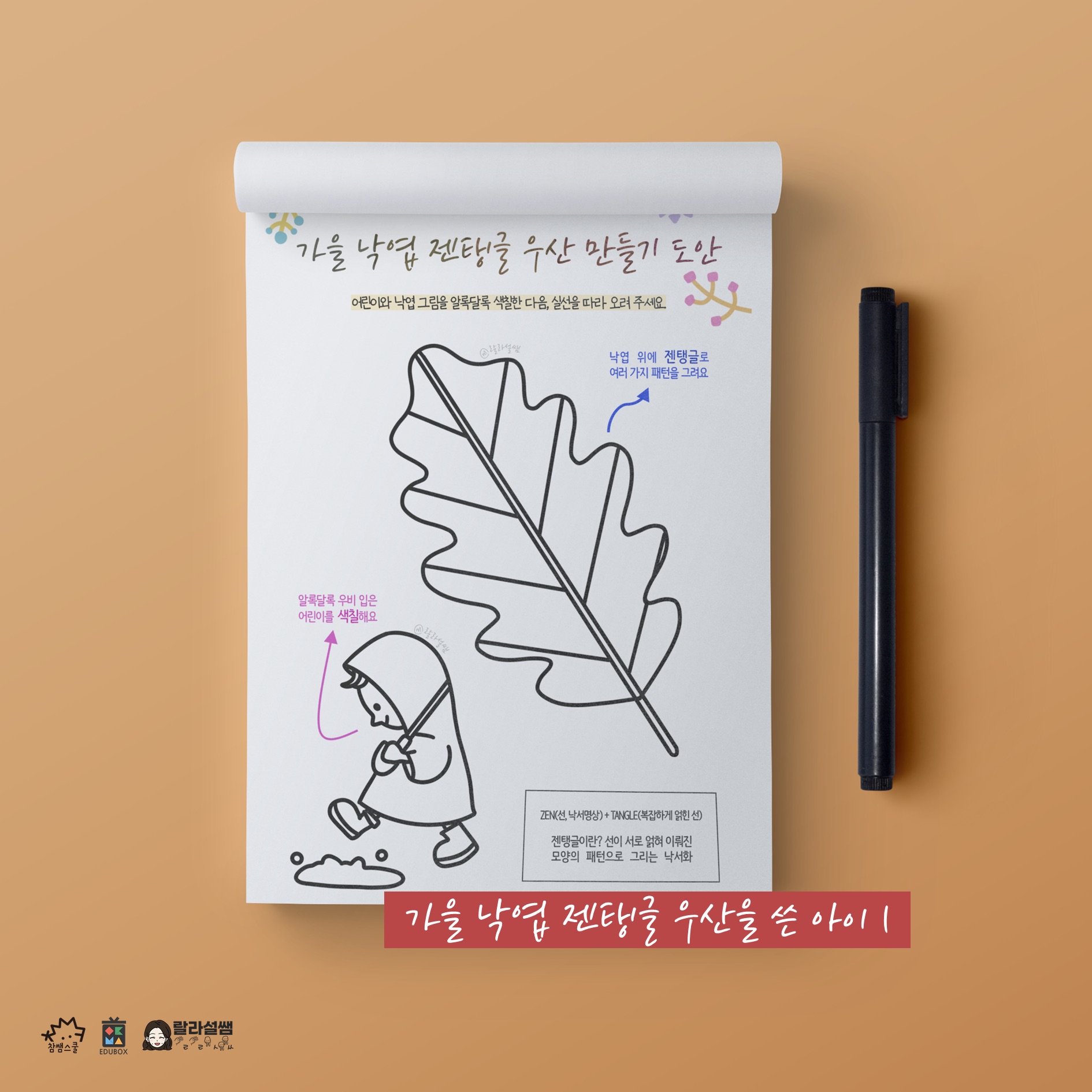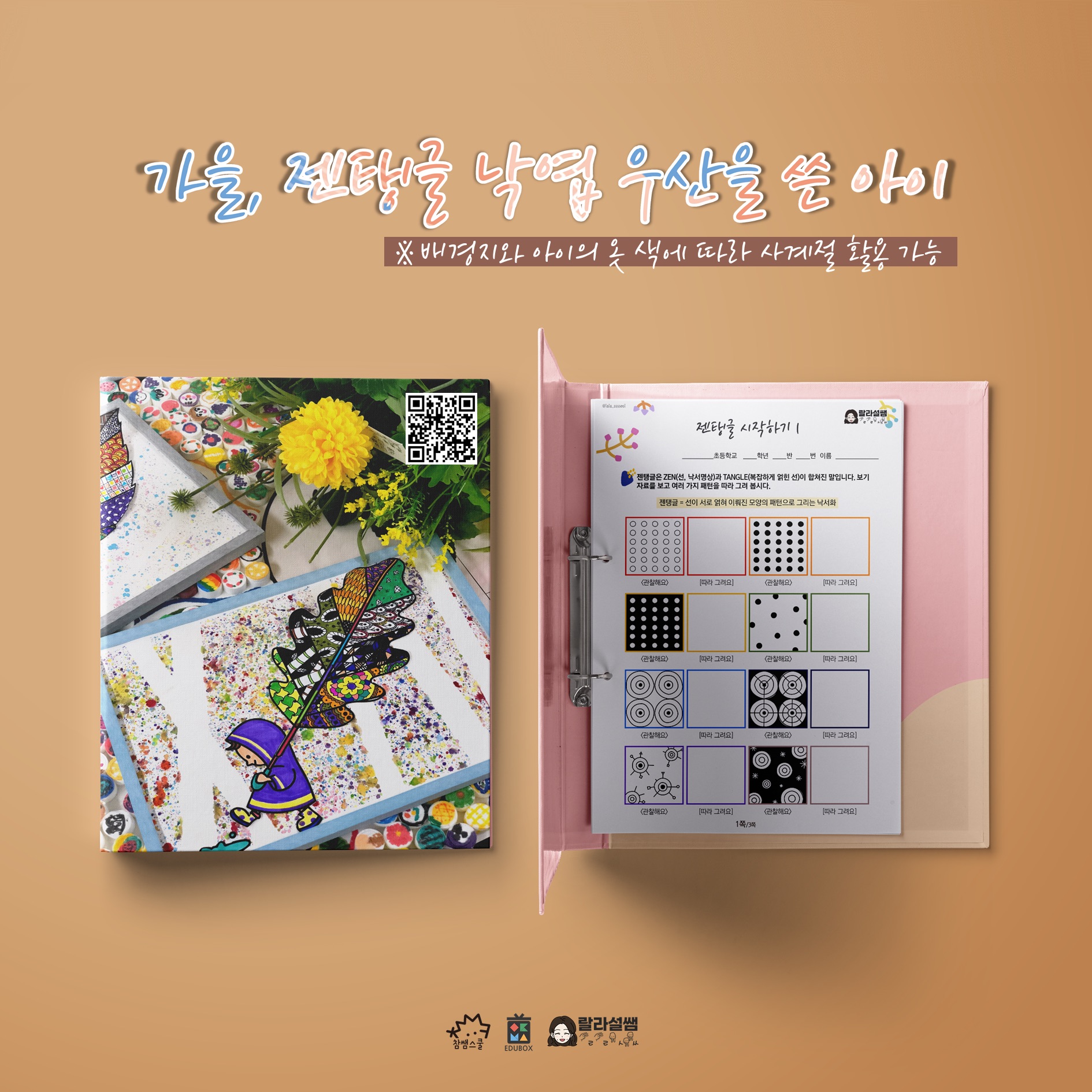 ▫젠탱글 연습하기 활동지 3쪽, 젠탱글 낙엽 우산을 쓴 아이 도안 2쪽입니다.
