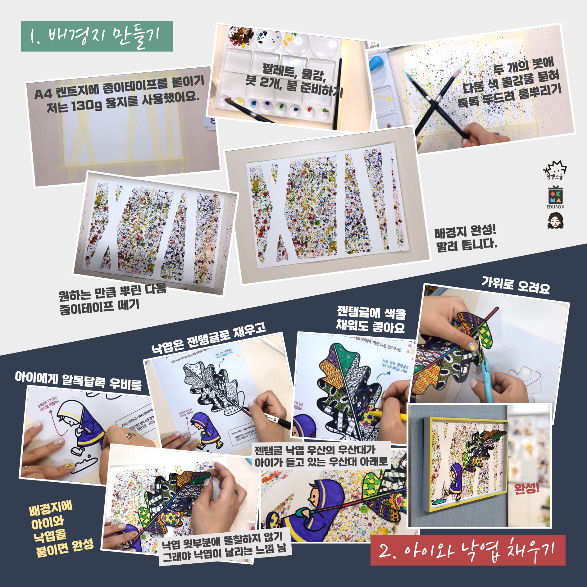 🍂 낙엽 윗부분에는 풀칠하지 않아요! 그래야 낙엽 우산이 자연스럽게 날리는 느낌을 줄 수 있어요.