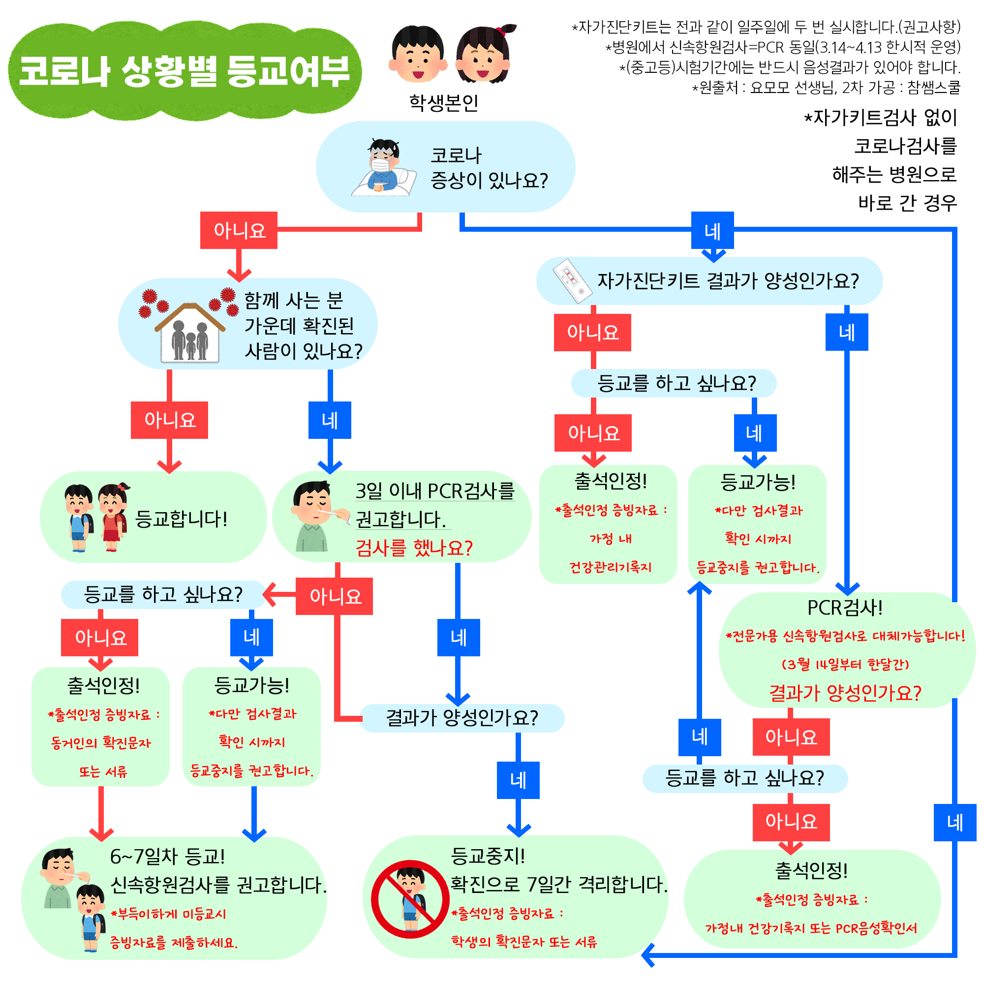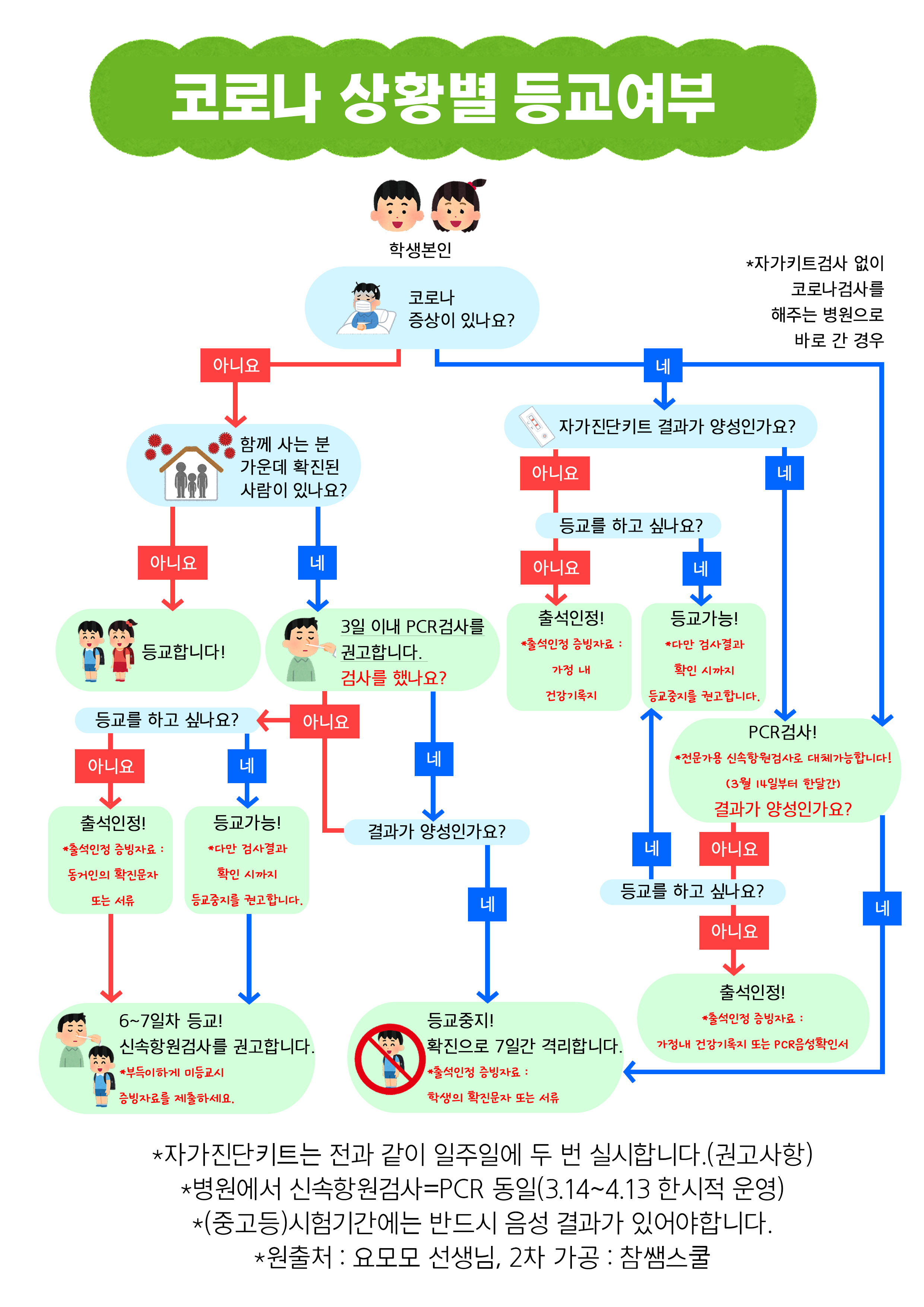 코로나 상황별 등교여부 (정사각 ver)