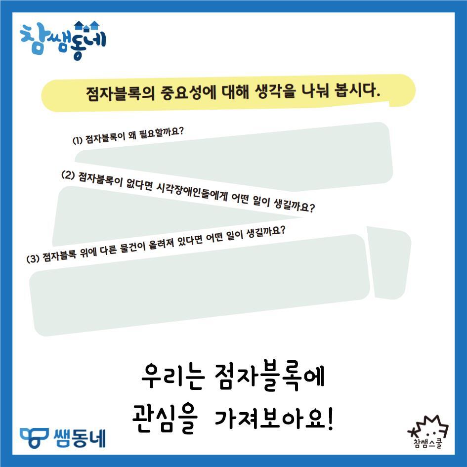 참쌤동네와 함께 점자블록이 필요한 곳에 알맞게 설치하는 활동을 해보아요.