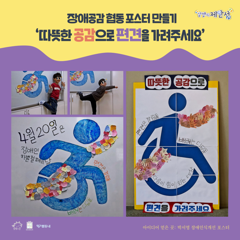 2022년 4월 20일, 제42회 장애인의 날 (장애인 차별 철폐의 날) 의미있는 활동으로 환경 구성까지! 1+1 활동을 소개합니다! 바로, 장애공감 협동 포스터 만들기! 따뜻한 공감으로 편견을 가려주