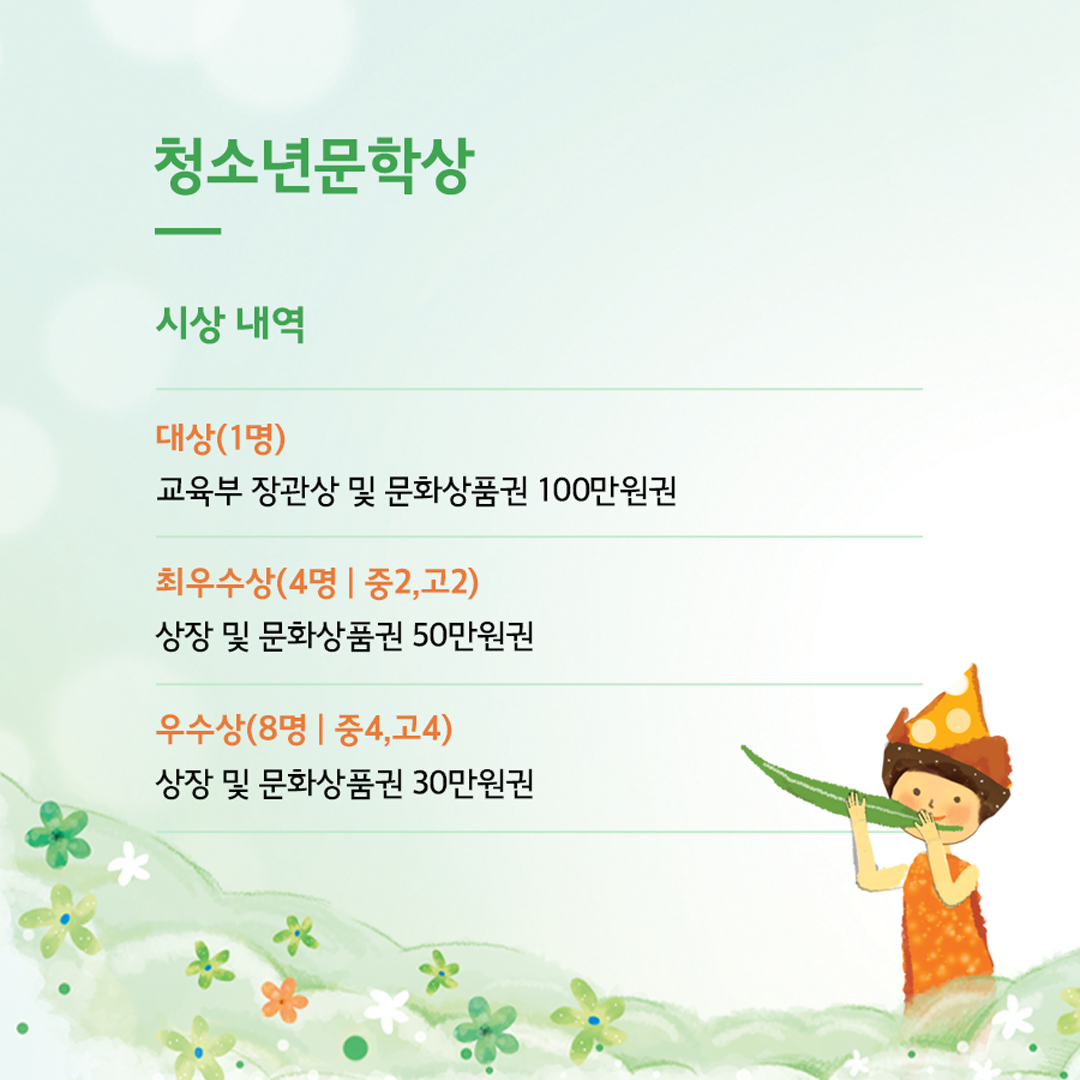 👉중고등학생의 자유로운 문학 창작 활동을 지원하는 “청소년문학상”