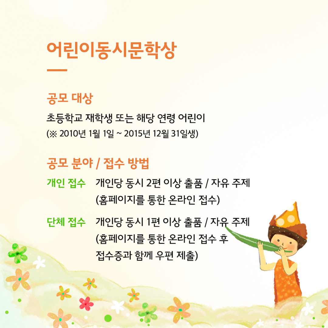 👉어린이의 창작 활동 후원을 위한 “어린이동시문학상”