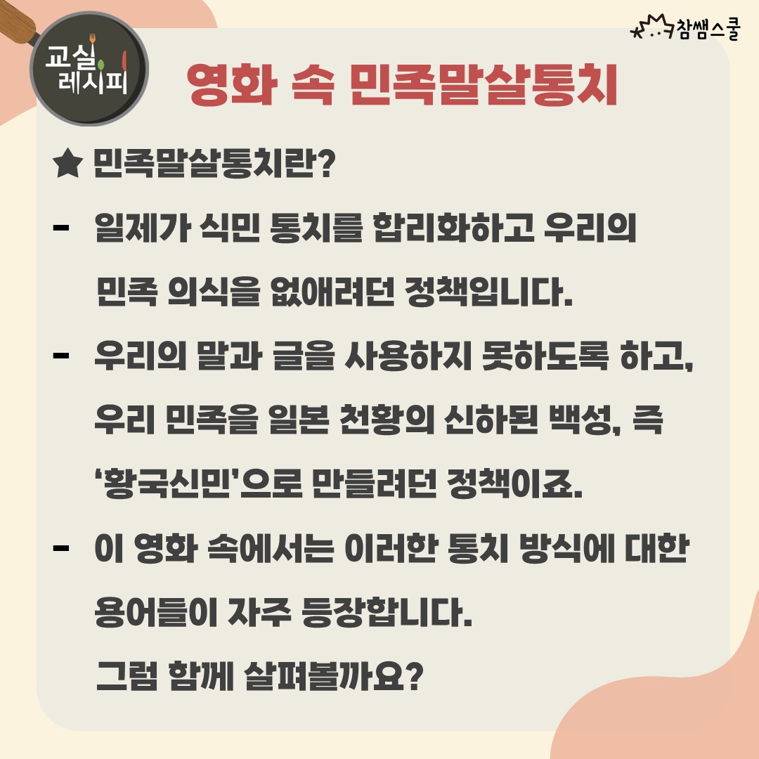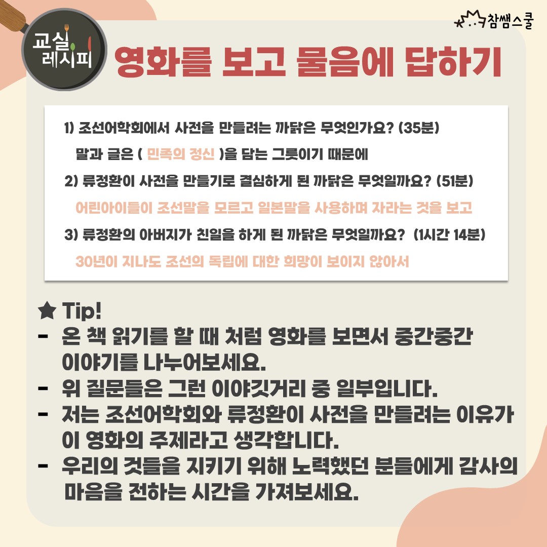 #영화수업 #역사수업 #영화말모이 #한글날 #계기교육 #일제강점기 #독립운동 #정씨네