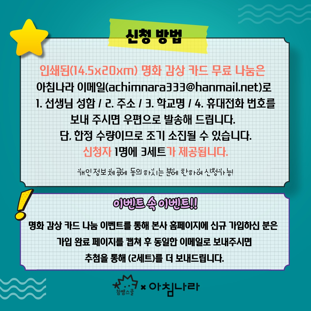 🌸참쌤스쿨과 아침나라 출판사가 교과서 엄선 명화들로 명화 감상 카드를 준비했습니다.