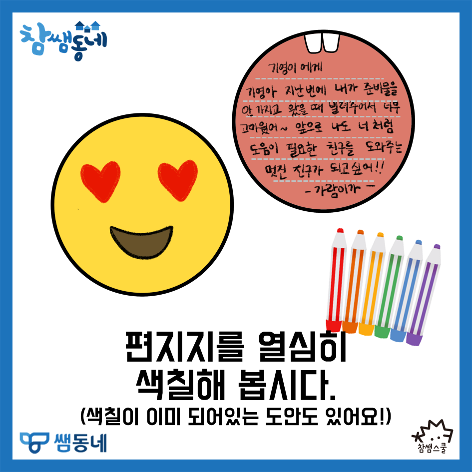 [참쌤동네] 말하는 이모지 편지😍😝😇 친구나 가족에게 하고 싶은 말이 있는데, 전하지 못하는 말이 있을까요?😘🥰😍 내 마음의 감정이 어떤지 귀 기울여 봐요👂🏻👂🏻 어려운 내 감정을