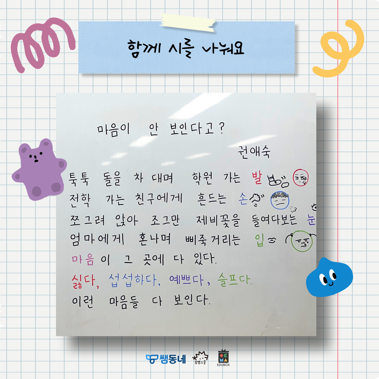 1. '마음이 안보인다고?' 시를 읽고 이야기 나누어요.