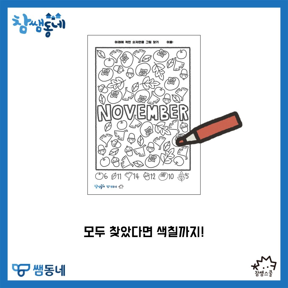 [참쌤동네] 11월 그림찾기 활동지