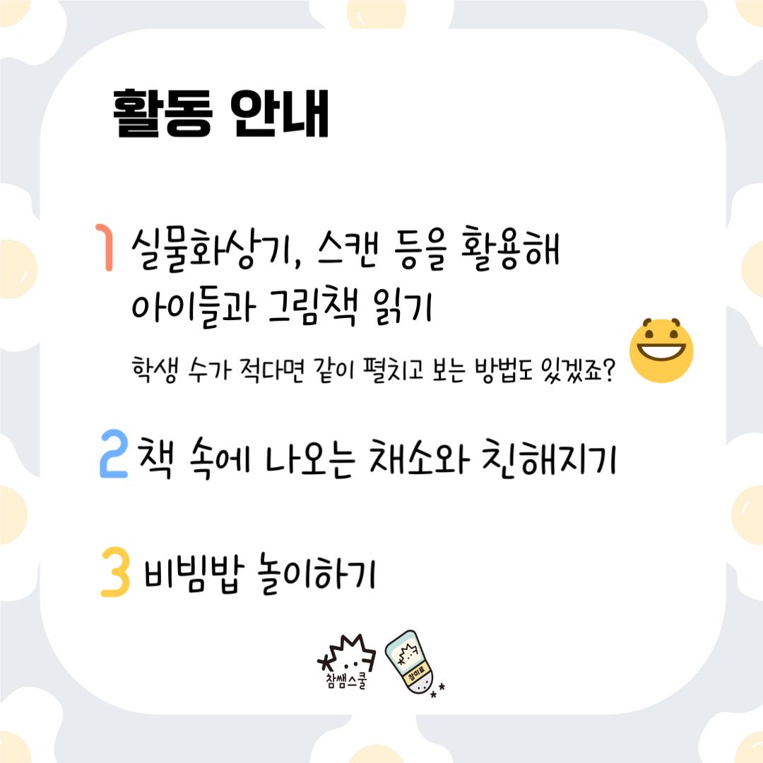 🌶️책을 읽고 난 후엔 협동을 통해 해결할 수 있는<비빔밥 만들기> 게임을 진행해보세요!