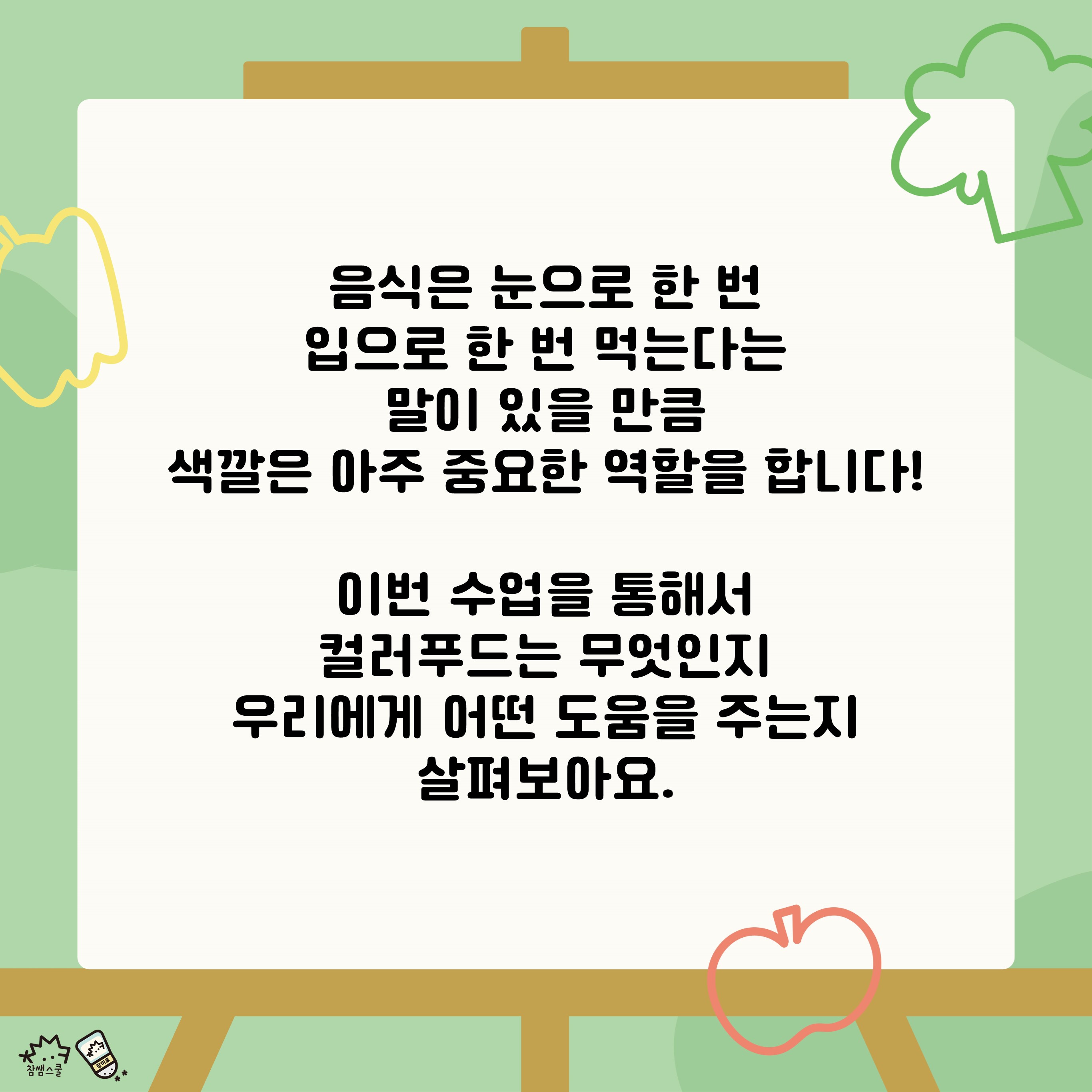 🍎이번 수업 주제는 ‘알록달록 컬러푸드’입니다.