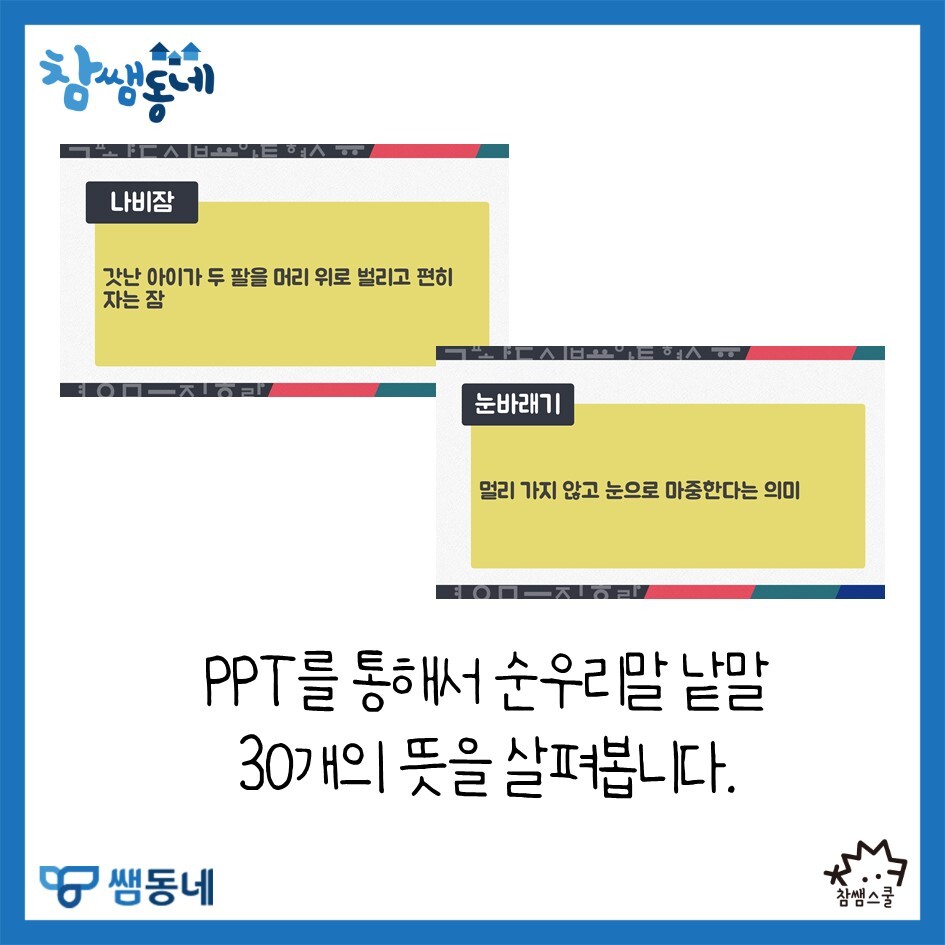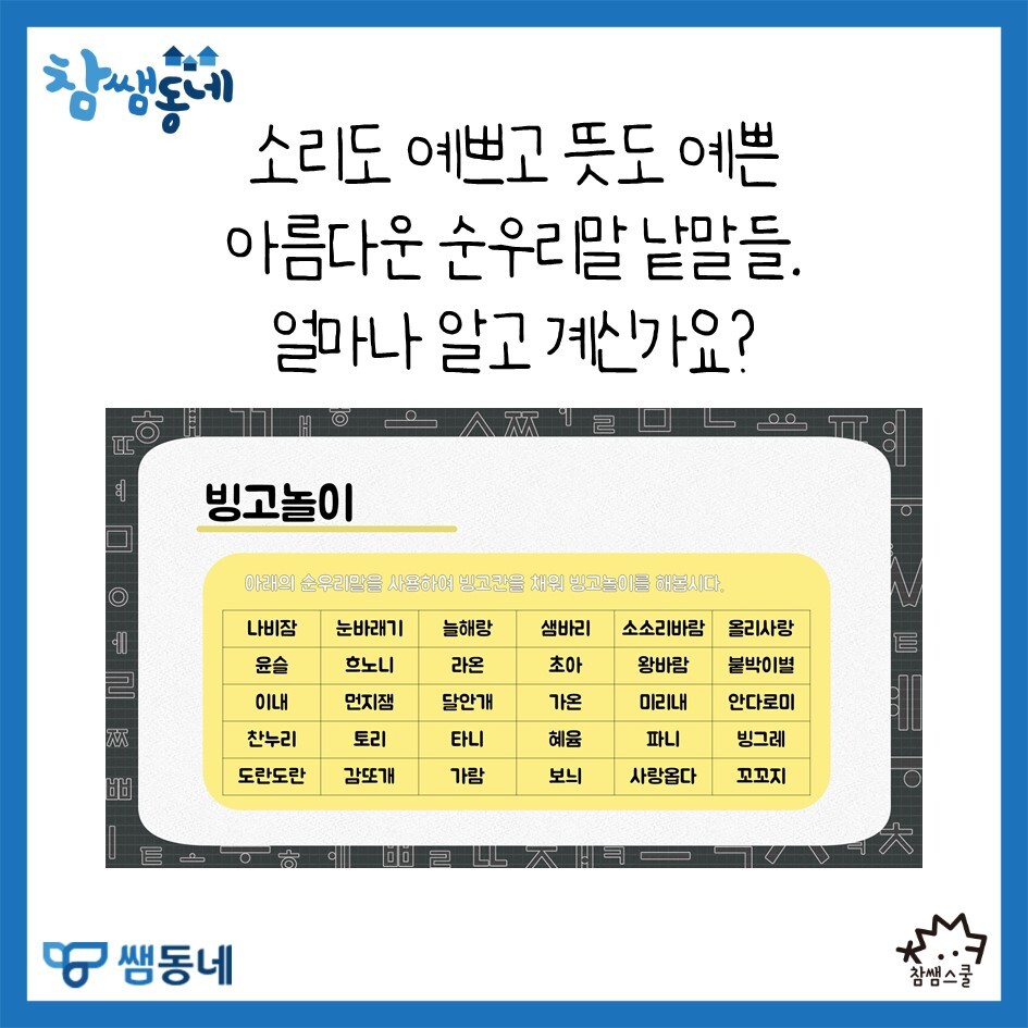 [참쌤동네] 소리도 예쁘고 뜻도 예쁜 우리말❣ 순우리말 빙고!
