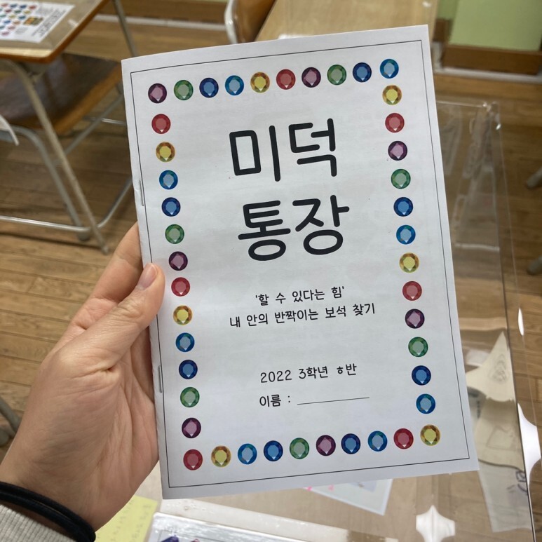 1년동안은 칭찬쪽지함에 친구의 미덕을 칭찬해주기, 스스로 미덕 통장 쓰기, 미덕 카드 필사를 하고요.