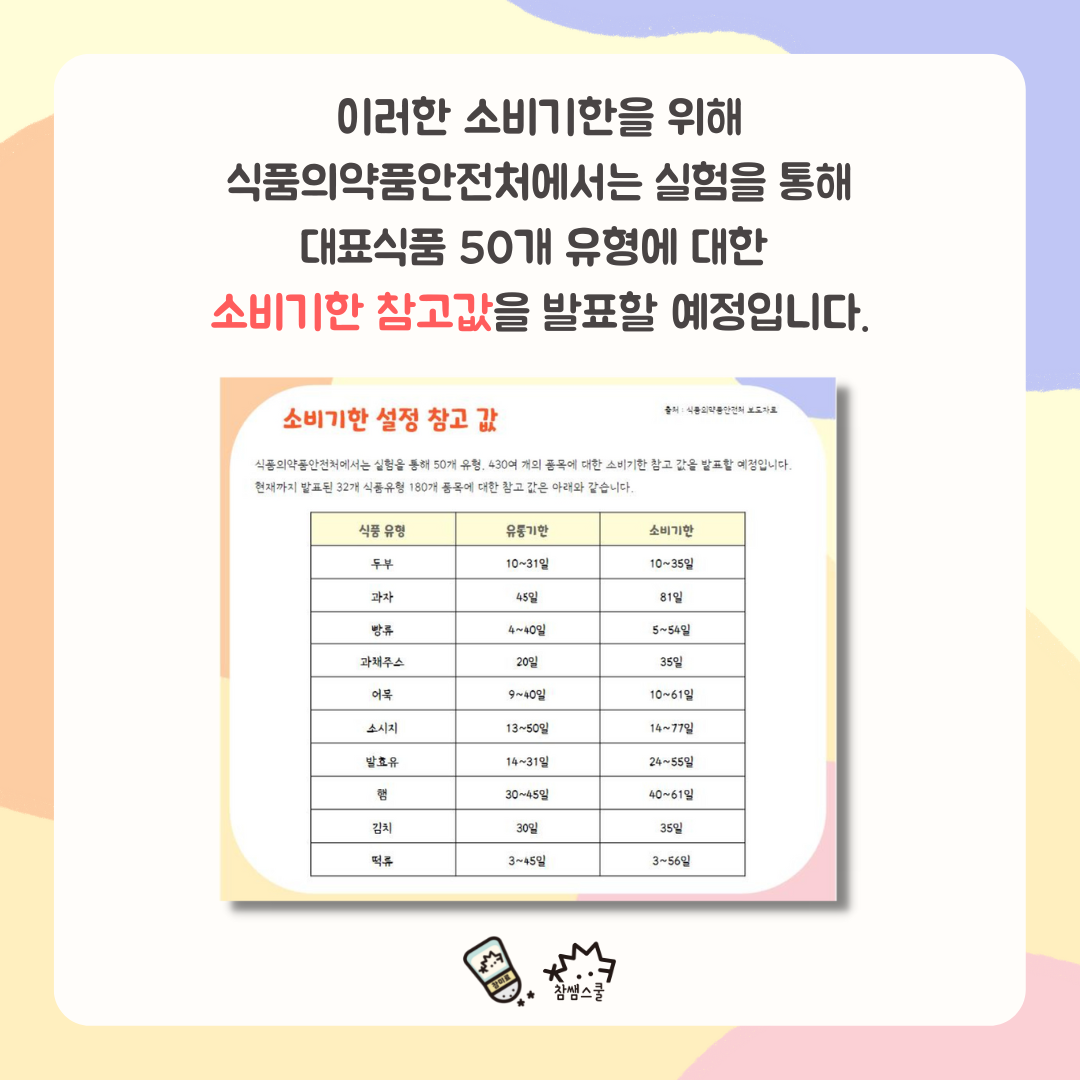 🍭 마지막으로 식품의약품안전처에서 실시한 소비기한 참고값 실험내용까지 준비했어요!