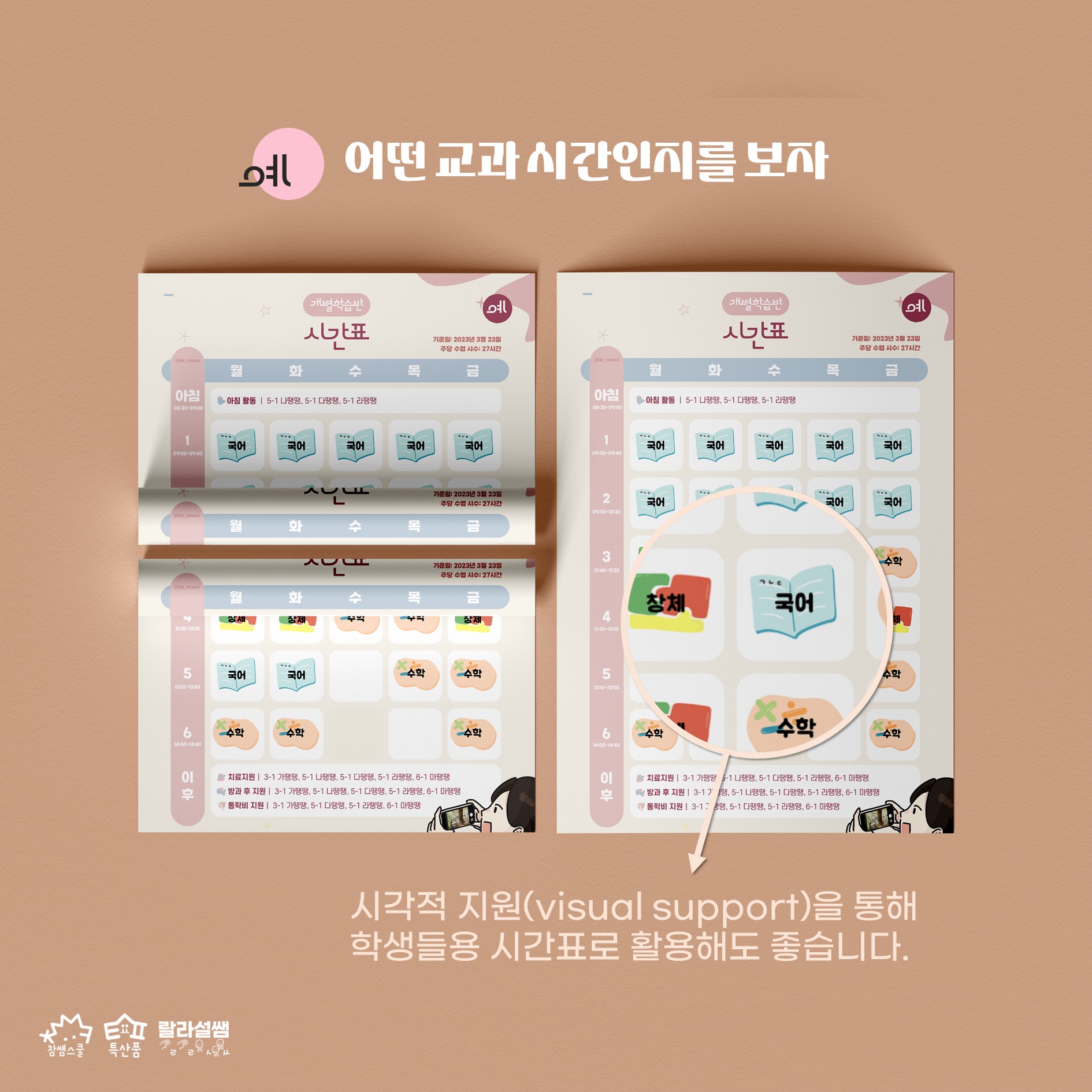 저는 모아찍기 한 다음 코팅해서 통합학급 담임 선생님들께 한 장씩 나눠 드려요.