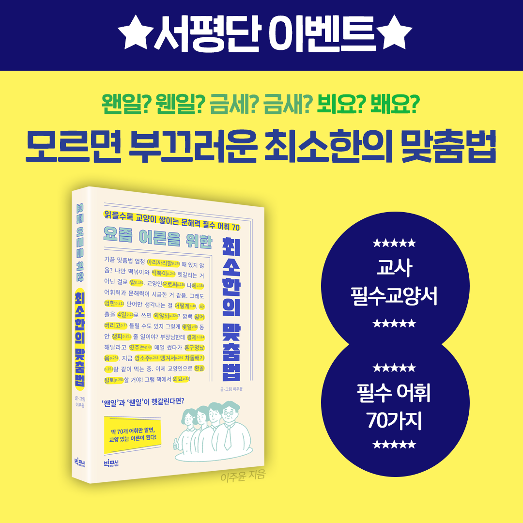 이주윤 저자의 <요즘 어른을 위한 최소한의 맞춤법>을 읽어주실 교사 서평단 10분을 모집합니다!