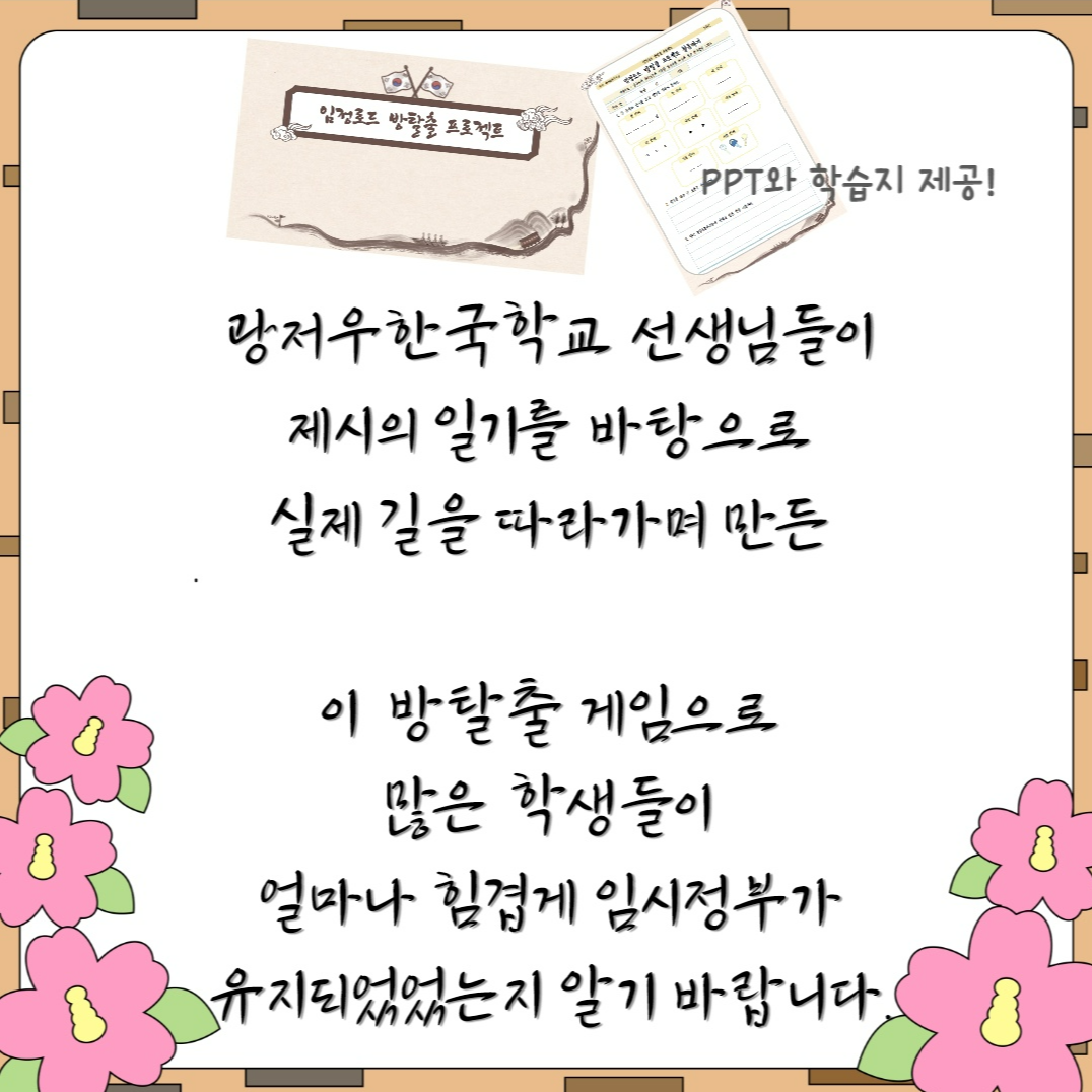 임정로드 방탈출 자료 다운로드는 아래의 링크 또는 광저우 한국 학교 홈페이지에서 해주세요!