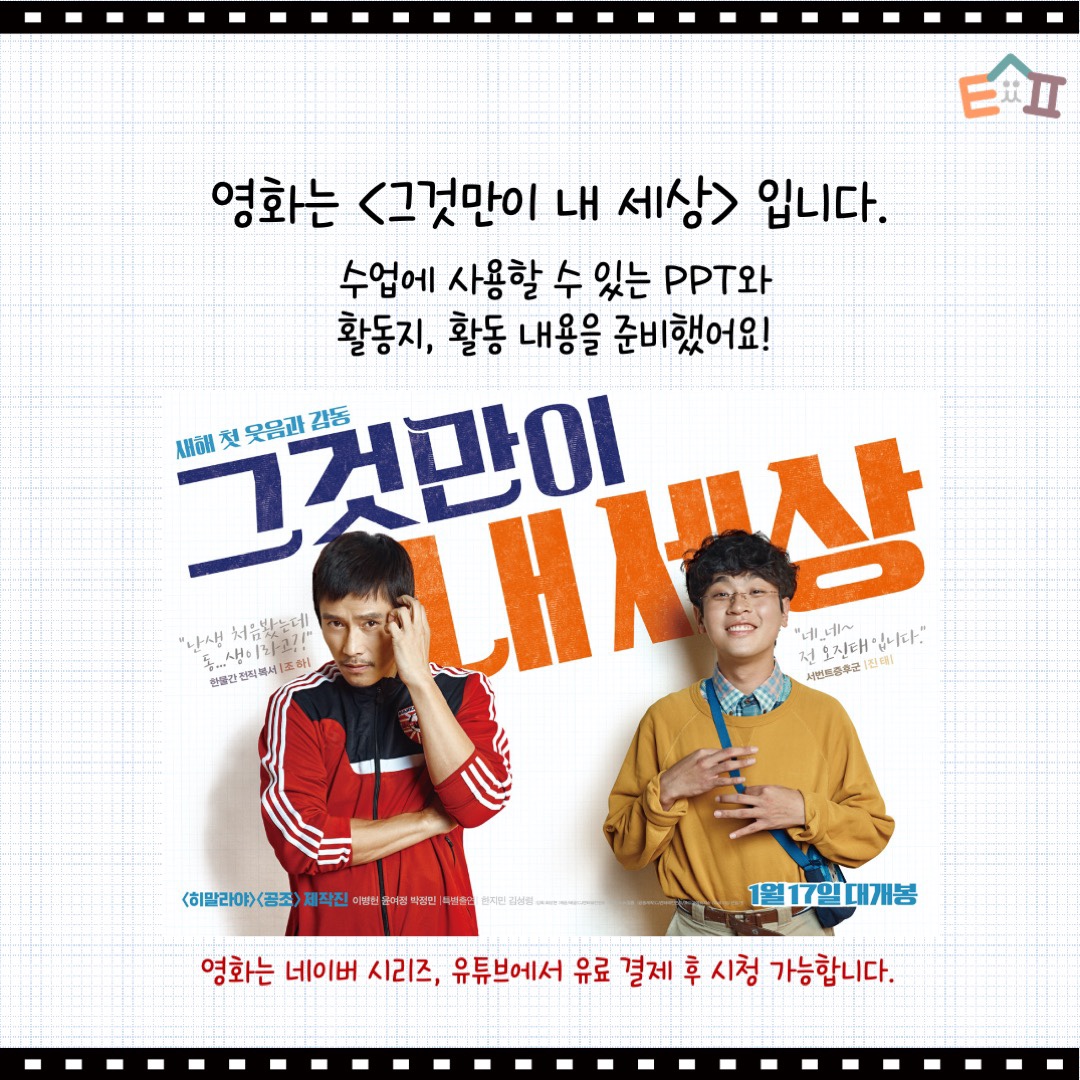 영화를 본 후에 할 수 있는 활동지와 활동 내용 PPT를 함께 준비했습니다.