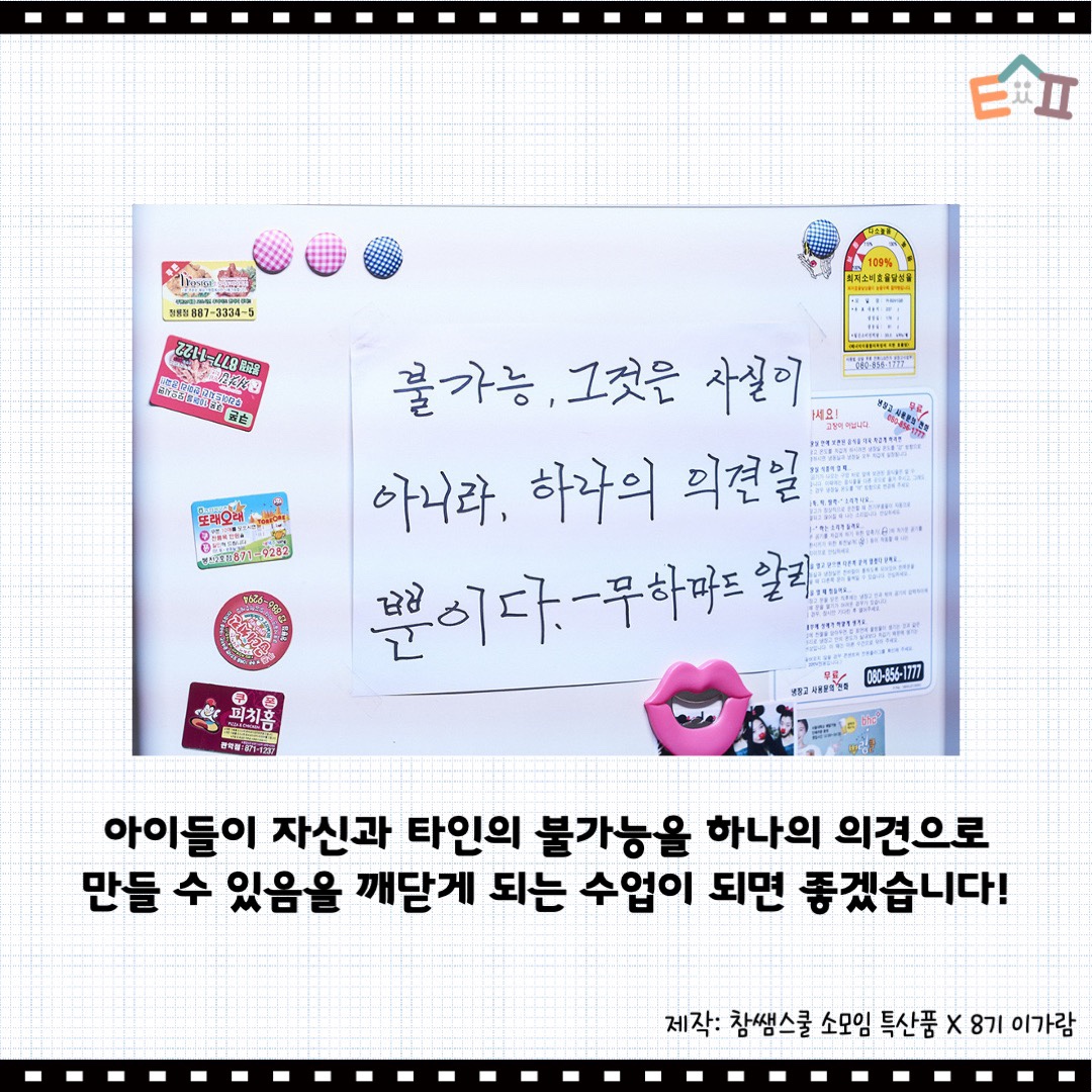 아이들도 불가능을 하나의 의견으로 만드는 힘을 얻는 수업이 되었으면 좋겠습니다.