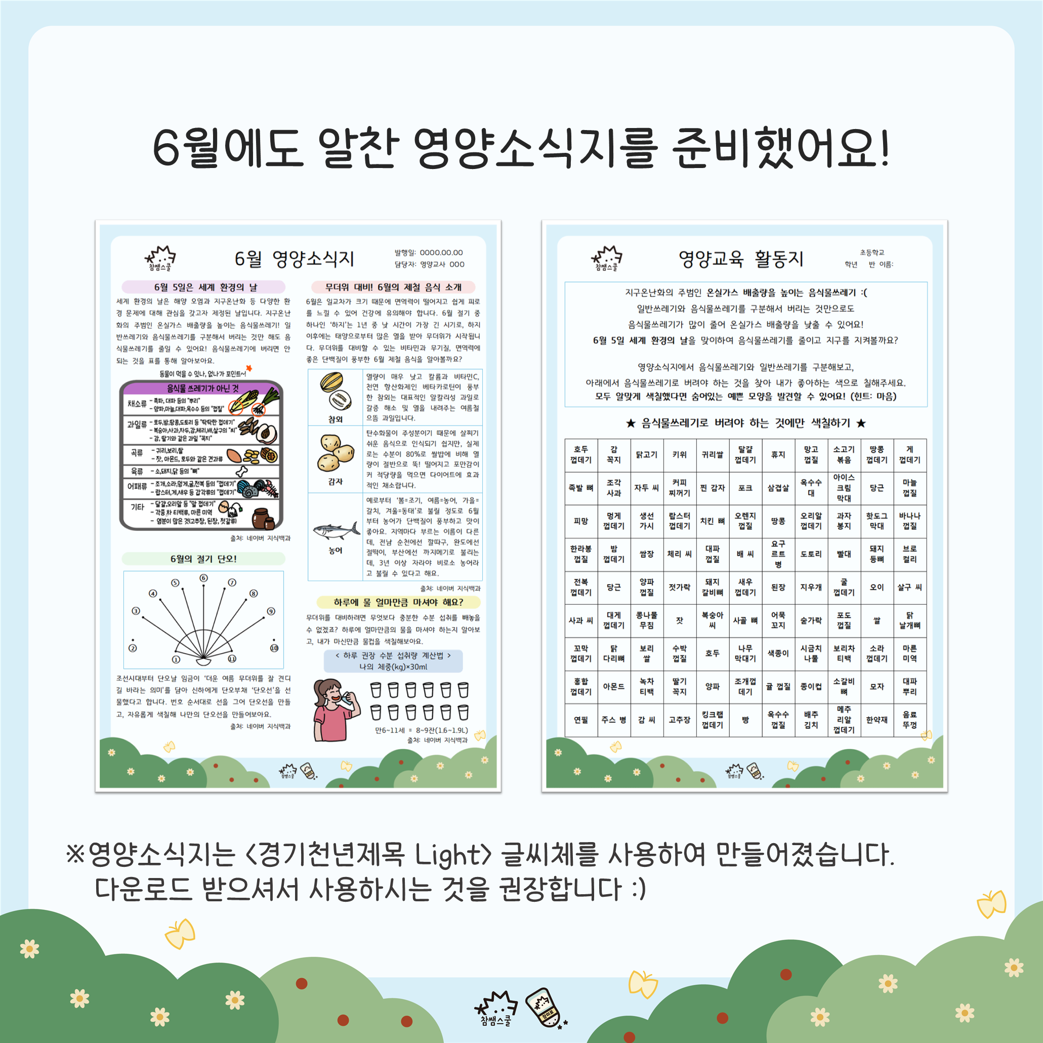 *영양소식지와 영양교육 활동지는 참쌤스쿨 블로그에서 다운 받으실 수 있어요.