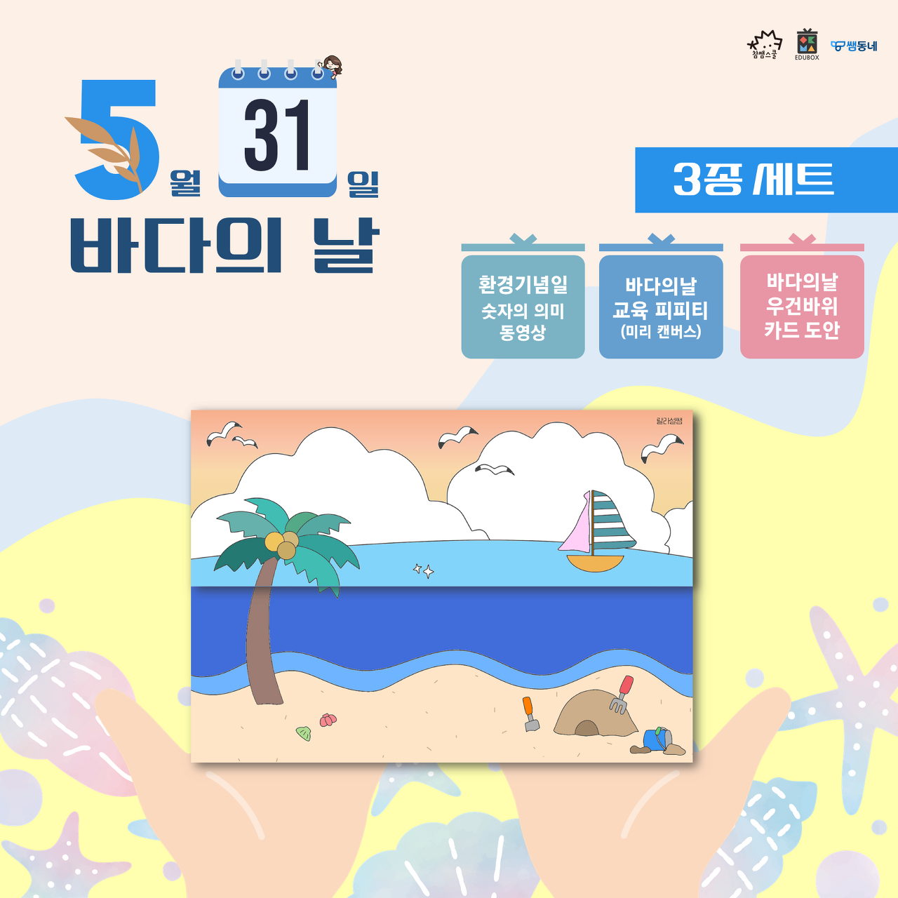 5월31일은 바다의 날입니다. 바다의 날을 맞아 카드 만들기 도안(4종)과 관련 수업 PPT를 준비했어요. 수업 관련 PPT 하나, 숫자로 알아보는 환경기념일 0405 / 0510 / 0531 / 0907 네 숫자의 비밀을 알아봅
