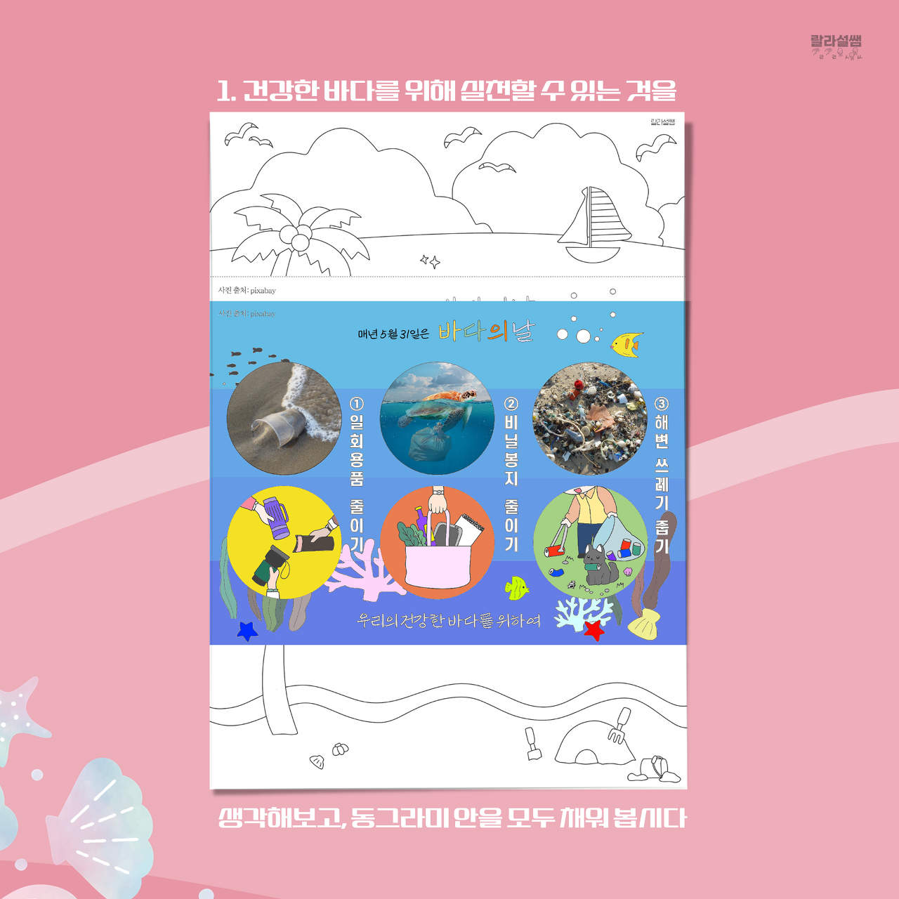 2. 바다의 날 카드 만들기 도안(4종, 채움형 2종, 채색형 2종, 예시 2종, 총 6쪽)