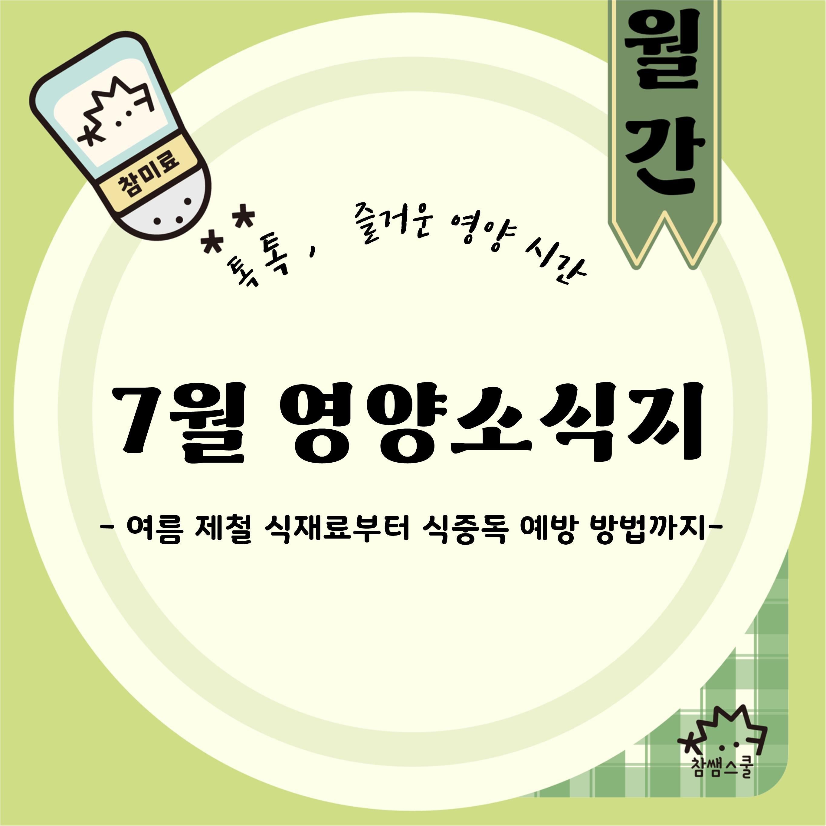 🧂톡톡(똑똑)~ 참미료의 알찬 소식지가 돌아왔습니다! 7월 영양소식지에는 어떤 내용이 담겨있을까요?😉