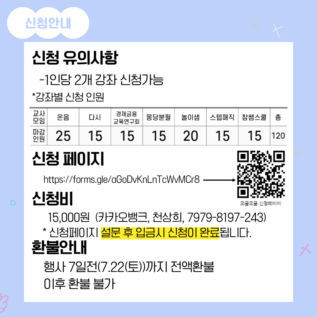 ★신청 이후로는 오픈채팅방을 통해 문의 및 안내 예정입니다.