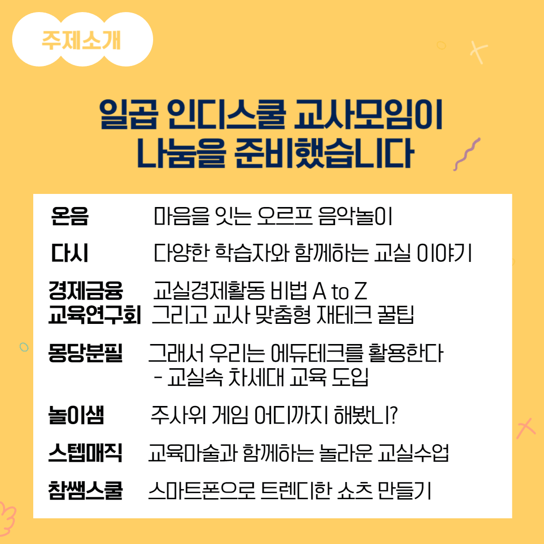 | 2023년 아산 티처프러너 초등교사 워크숍 안내 (0) | 2023.06.13 |