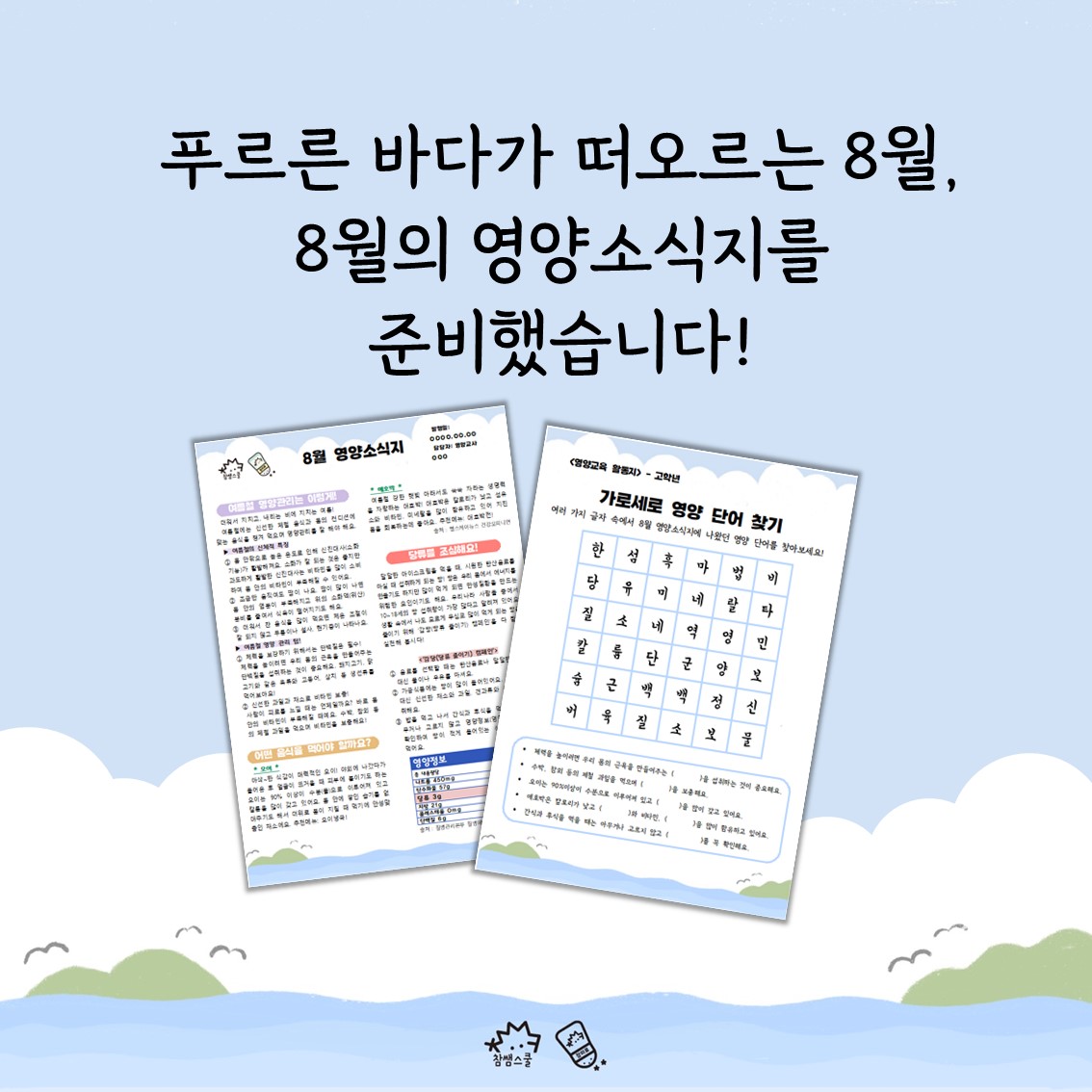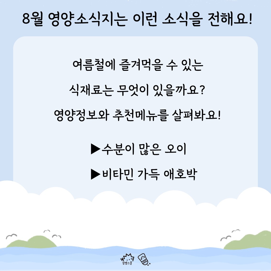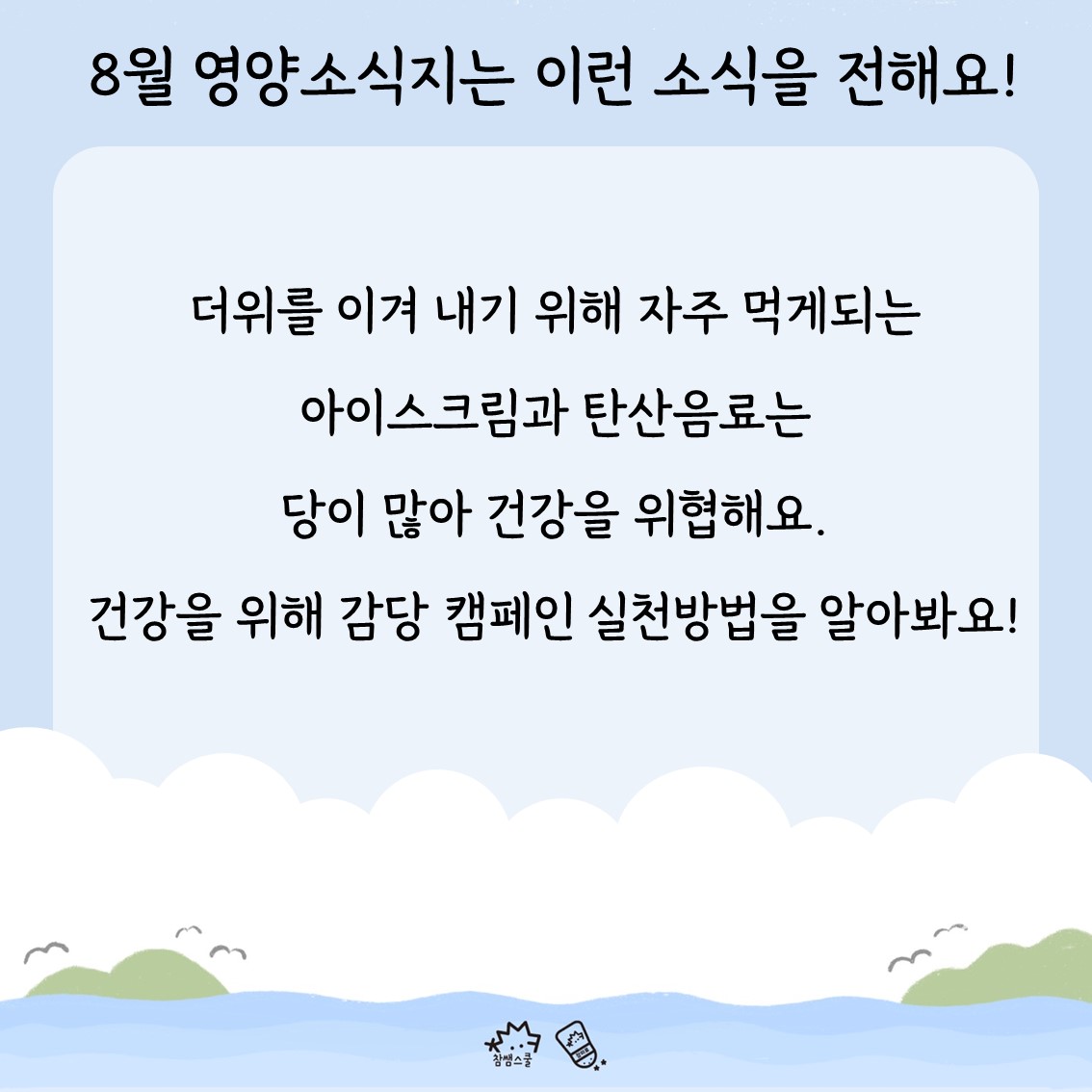 🧂톡톡(똑똑)~ 참미료의 알찬 소식지가 돌아왔습니다! 8월 영양소식지에는 어떤 내용이 담겨있을까요?😉