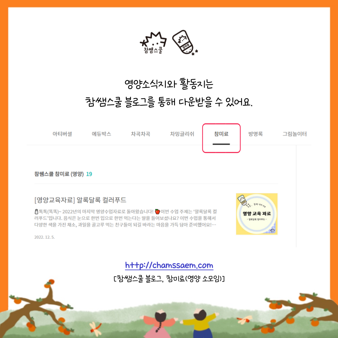 * 영양소식지와 활동지는 참쌤스쿨 블로그에서 다운 받으실 수 있어요.