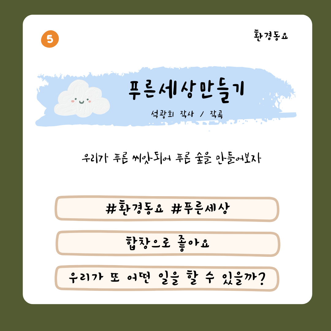 선생님들께서 알고 계신 🌍환경&안전🚒 주제의 동요도 댓글로 추천해주세요 :D