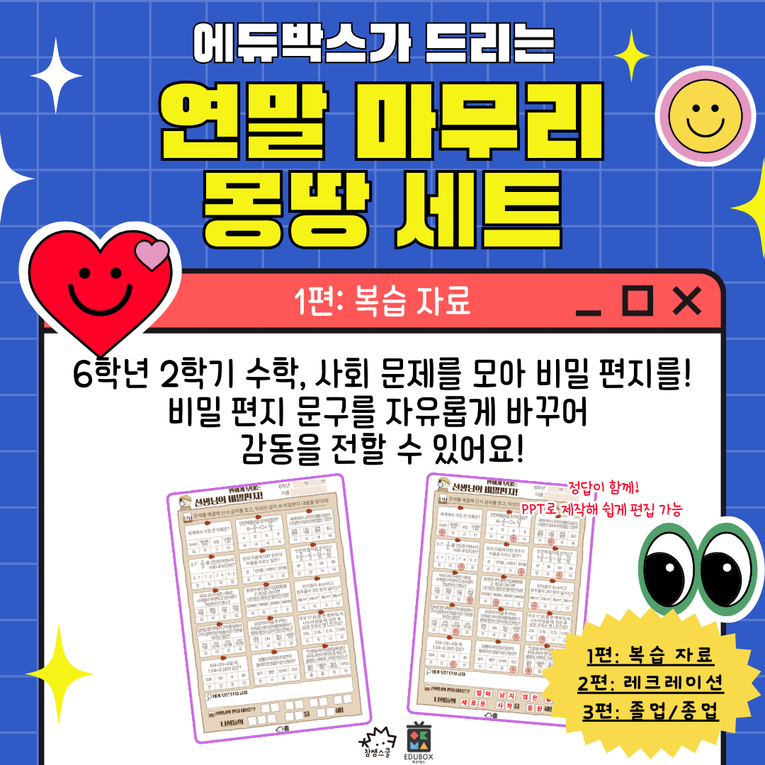 | [몽땅 세트] 연말 마무리 종업/졸업 자료 3탄 (0) | 2023.11.27 |