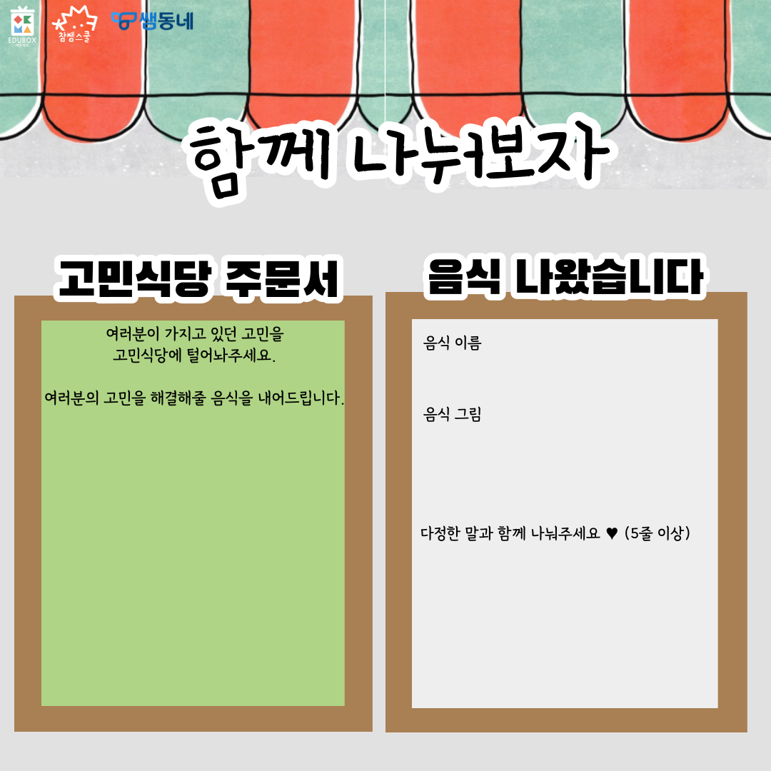 👂그림책 '고민 식당'으로 이야기를 더하고