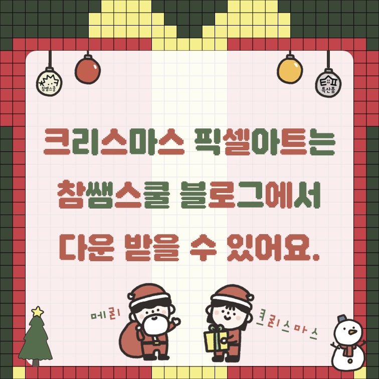 크리스마스 픽셀아트는 8기 최미진 선생님(@zlnl_t), 곤 선생님(@dal_goni)이 제작해주셨습니다.