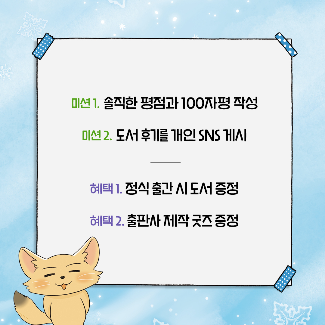 ● 1. 추후 당첨 발표와 함께 보내드리는 구글 폼을 통해 평점과 100자평을 작성해 주세요!