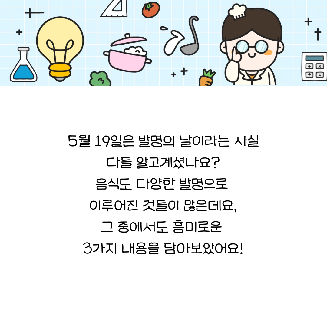 💡5월 19일은 발명의 날이에요. 음식과 관련된 여러가지 발명에는 무엇이 있는지 알아보아요.