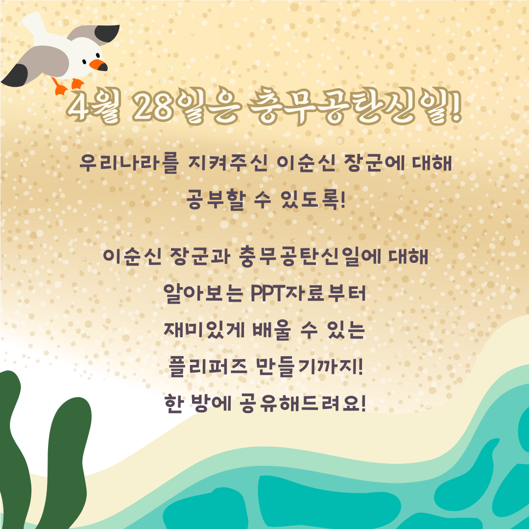 🫡 이순신 장군과 충무공탄신일에 대해 PPT 자료로 함께 공부해요.