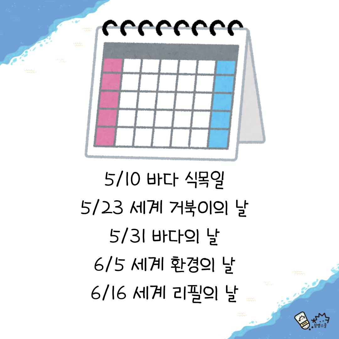5~6월에는 바다식목일(5/10), 세계거북이의 날(5/23),